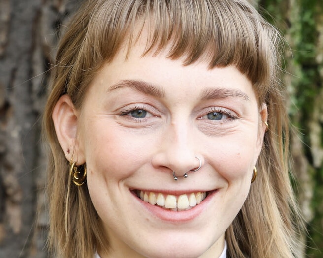 Janneke unterrichtet Dänisch. Sie ist in Skive, Dänemark, geboren und aufgewachsen und hat niederländische Wurzeln, da ihre Mutter aus den Niederlanden stammt. Sie ist ausgebildete Lehrerin in den Fächern Deutsch, Mathematik und Sport und hat sowohl an dänischen Frei- und Efterschulen als auch an der deutsch-skandinavischen Gemeinschaftsschule in Berlin unterrichtet. Sie lebt in Kopenhagen, wo sie Pädagogische Soziologie studiert. Sie fährt gerne mit ihrem Rennrad durch die Stadt, betreibt Crossfit und spielt Brettspiele mit ihrer Wohngemeinschaft. In ihrem Unterricht legt sie großen Wert darauf, einen sicheren Gesprächsraum zu schaffen, in dem die Kommunikation im Mittelpunkt steht.